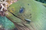 - Green moray getting cleaned