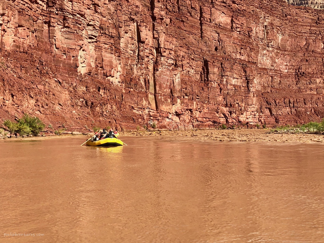 GC-Day5 – 15 Published October 28, 2018 at 1280 × 960 in Day 5: The River Turned Brown ← Previous Next → Running Unkar Rapid – the water was so muddy that there was no whitewater, which made the rapids very hard to read for our guides