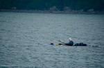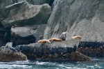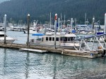 After my early morning jaunt part way up Mount Marathon, we all boarded the Wild Lander for a four-hour boat ride to Kenai Fjords Glacier Lodge. Even though there was a bit of haze in the air, we had nice views of several tidewater glaciers as we headed out of Resurrection Bay, around Aialik Cape, and up into Aialik Bay. We saw amazing sea life on our journey, including orcas, harbor seals, nesting cormorants, sea lions, puffins, and sea otters. And after we checked into our cabins, we ended the day with glacieritas (margaritas made with glacier ice) on the main deck overlooking Pedersen Lagoon.