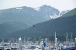 - A bald eagle over the harbor