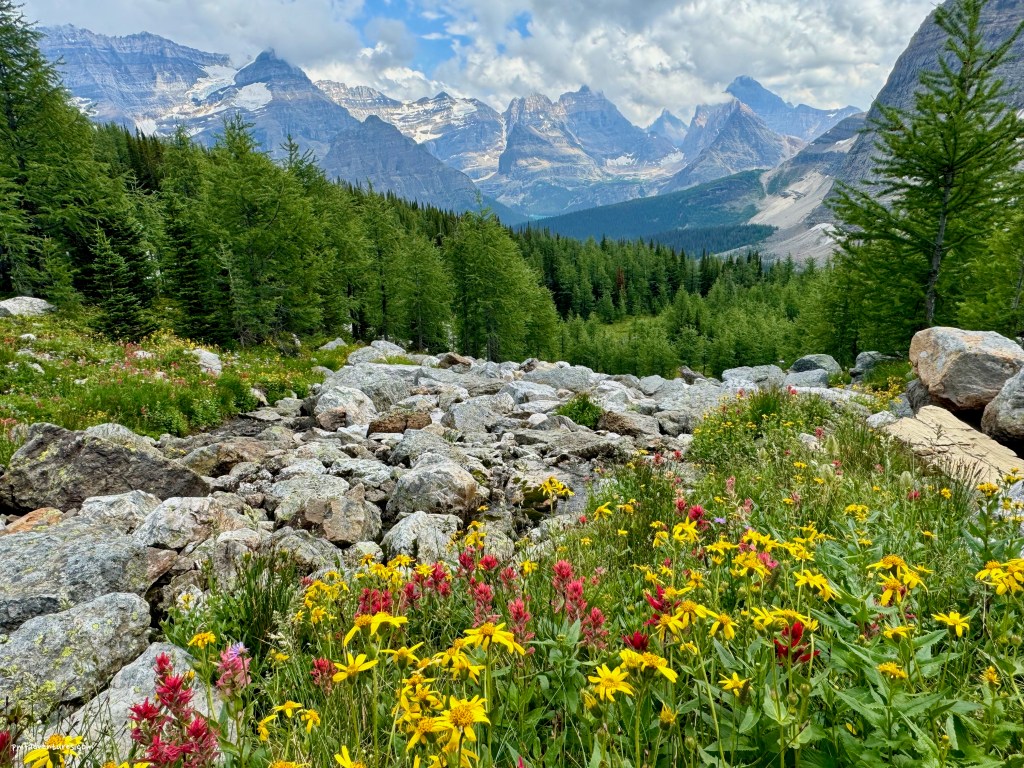 The weather forecast that was posted on the morning of August 7 made it seem like it would be a good day for me to hike the Alpine Circuit, as there was no rain in the forecast. The Alpine Circuit is not a traditional trail, but a set of four routes that traverse high above the Lake O’Hara basin on rough paths and exposed rocky ledges, with lots of steep ascents and descents – just the kind of stuff I love!