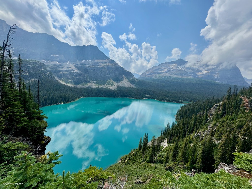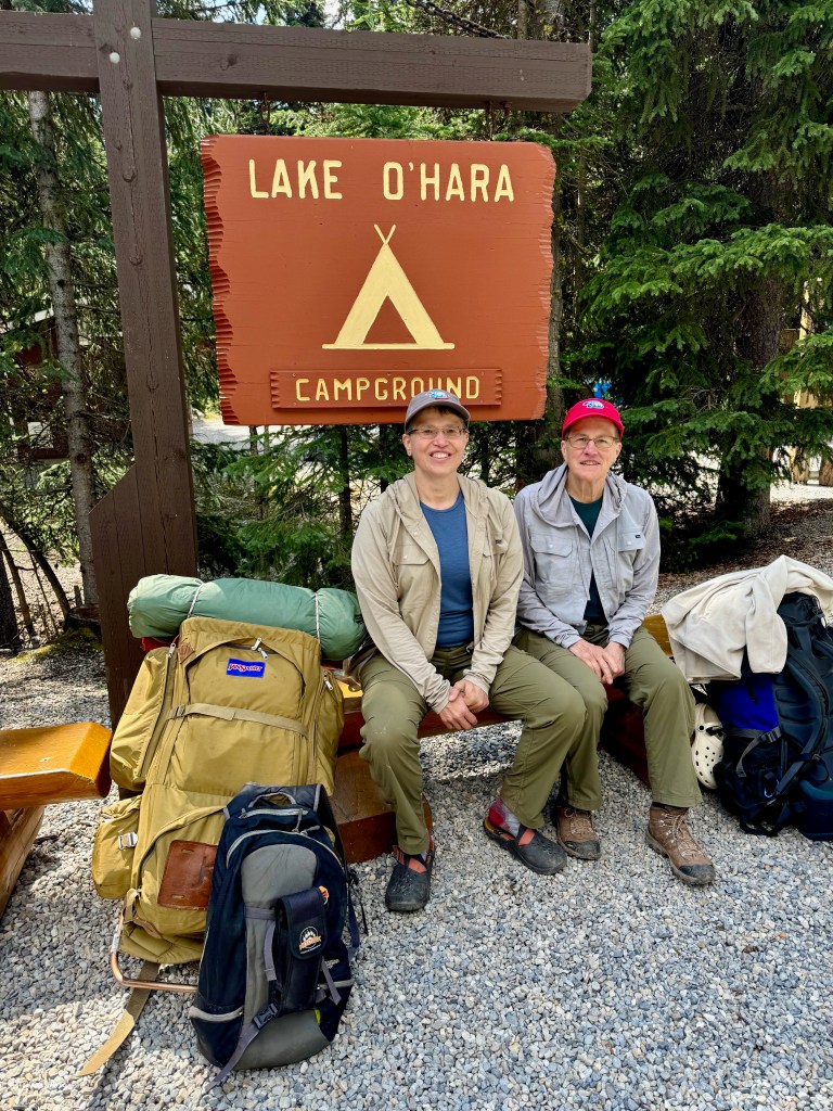 Back in January, I felt like we had won the lottery when we scored three nights at the Lake O’Hara Campground in Yoho National Park for August. Now that we’ve been there, I know just how lucky we were to get to spend that much time at Lake O’Hara. We had quite a bit of rain, but that didn’t prevent us from getting in some great hikes, and the upside is that the rain cleared out all the smoke from nearby wildfires. Lake O’Hara Campground is a backcountry campground, but instead of having to carry all of your gear in on your back, you get to load it in a duffel bag and put in on a bus for the 6 mile drive to camp.