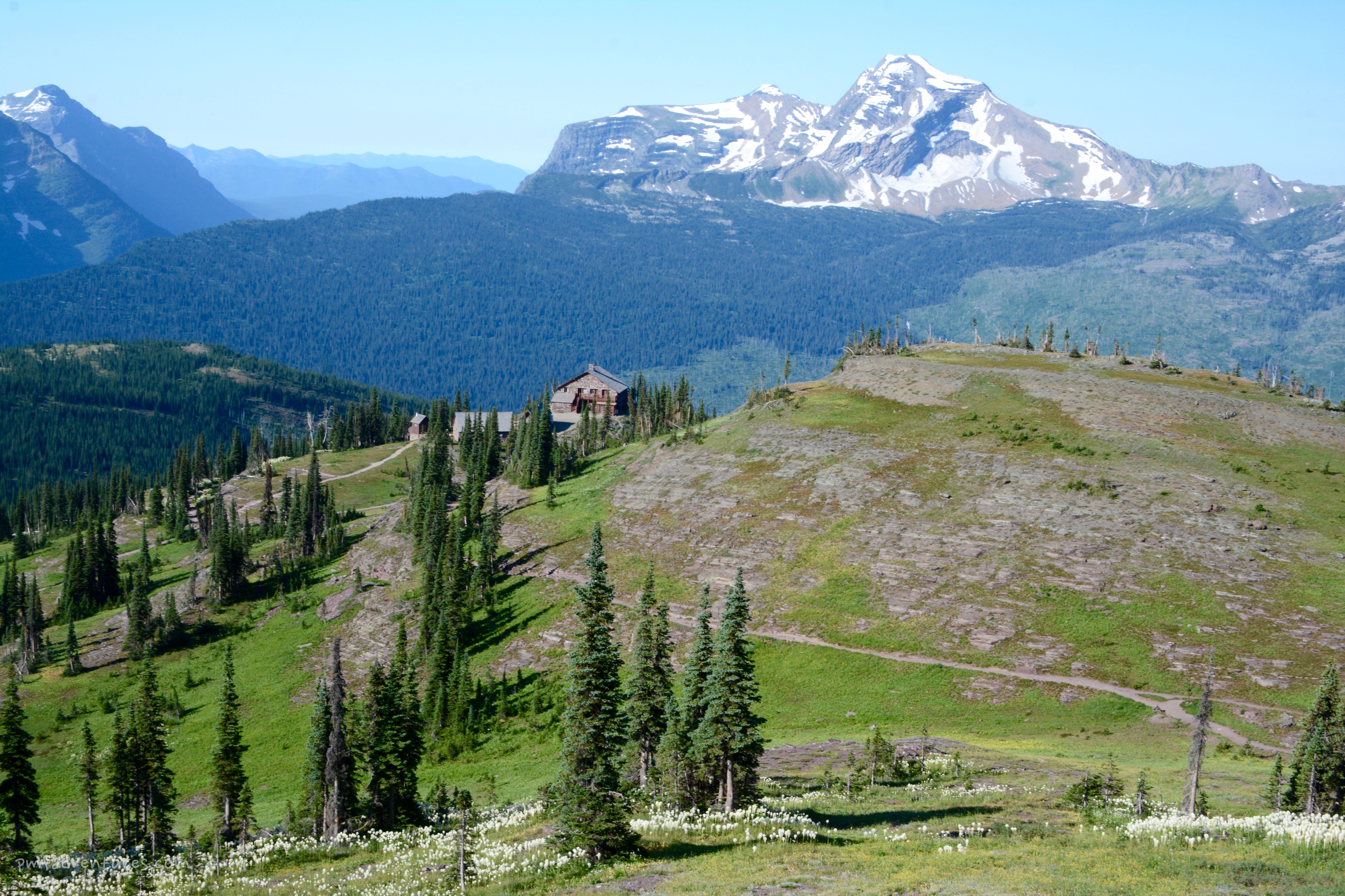 Glacier2017 – 31 Published March 27, 2018 at 6000 × 4000 A great view of Granite Park Chalet from with Swiftcurrent Pass trail